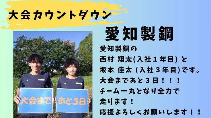 【愛知製鋼】大会カウントダウン 3日前🏃♂️🏃♂️🏃♂️