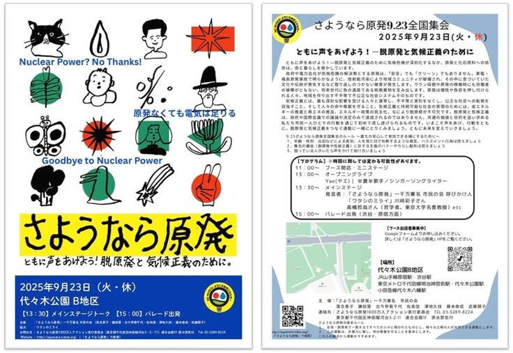 9月23日に東京代々木公園で「さようなら原発全国集会」が開催されます。当室もブース出展を行います。ぜひご参加ください!