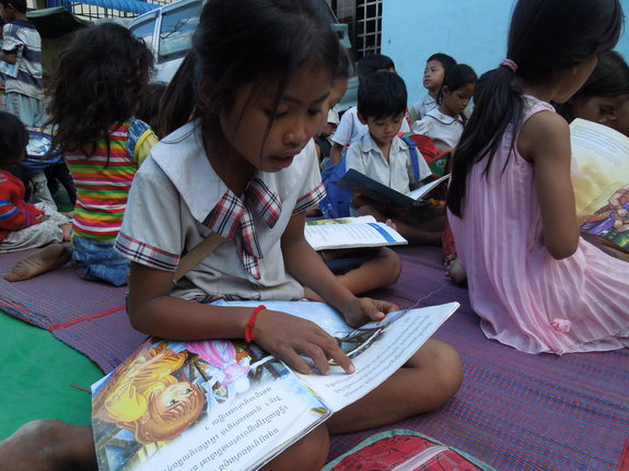 長年の戦争で、本や読み物は焼かれてしまい、戦後の復興の中で、カンボジアの民話も活字や子ども向けの絵本として出版されています。
