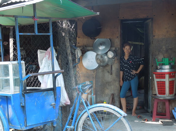 (生計を支える自転車式屋台。女の子は大きくなると母親のお手伝いをするようになります。)