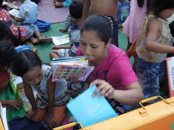 子どもたちに交じって本を選ぶサブリーさんの姿が見えます。「とにかく、毎回いろいろな本を読みたい、と楽しみにしています。」とサブリーさん。