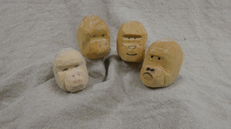 木にゴリラをスケッチし、彫刻刀を使って掘り進めて、それぞれのゴリラの木彫りが完成しました。
