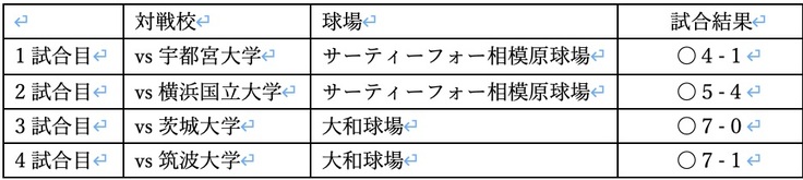 関東甲信越大学体育大会では、強豪の筑波大学や横浜国立大学との試合でも自分たちの野球のスタイルで戦うことができ、結果勝利を収めました。