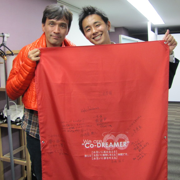 Co-Dreamer認定ステッカー+2014年カナダ北極圏単独徒歩500kmの冒険旗に名前を入れて一緒に冒険