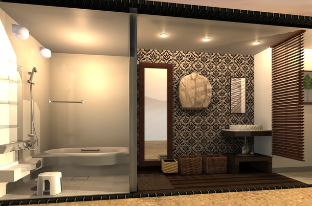 この状況を大阪の友人に話すと、快く協力してくれることになりました。新品の約6メートルの海上用コンテナを購入し、大阪でお風呂に改装し、熊本の避難所に届けます。区切りを設置し、男性用、女性用のお風呂をひとつのコンテナの中に実現。シャワー・洗い場・脱衣所・洗面台を設えたリラックスできる空間です。