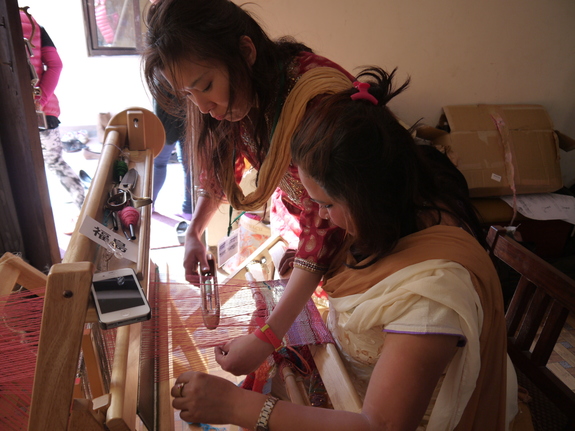 2014年3月、アジア女性自立プロジェクトの協力を得てネパールの人身売買サバイバーたちが共同生活をする施設「シャクティサムハ」で織りつなぎを実施しました。