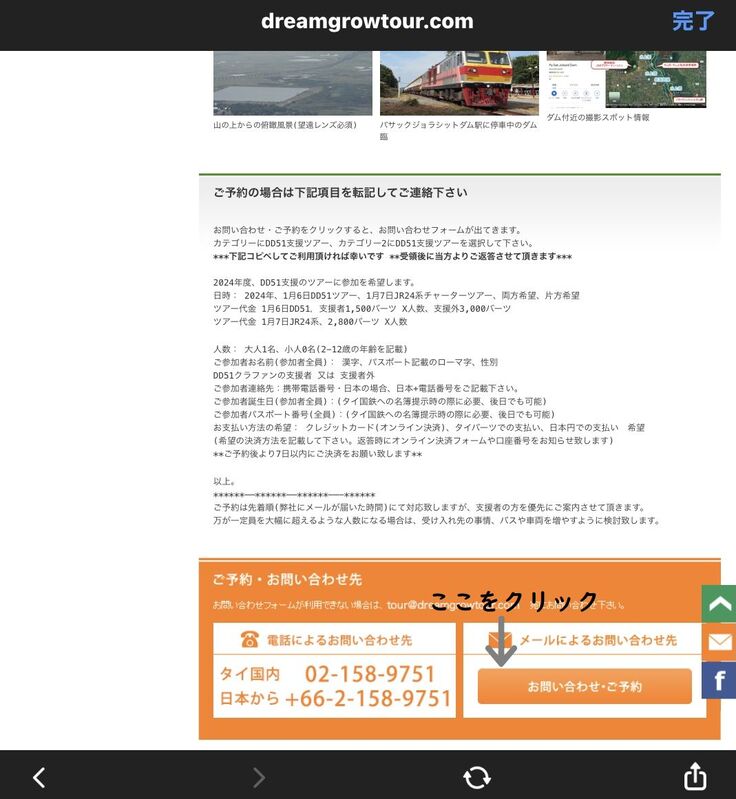 ①タイ鉄道旅行のご案内となります。催行の一か月前までにはご案内いたします。