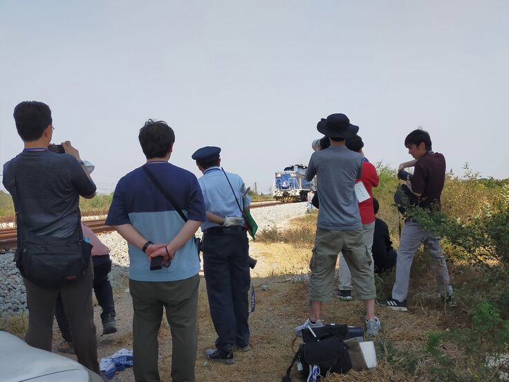 ・希望者は途中ミニバスに乗り換えて、乗ってきた客車列車の撮影に向かいます