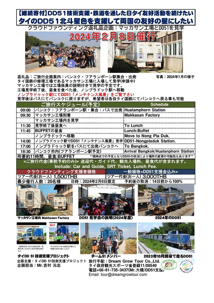 2025年2月8日のタイ国鉄マッカサン工場見学とDD51見学のクラウドファンディングのリターンツアーのご希望者が多いため、バスを一台追加して、募集継続することにいたしました。