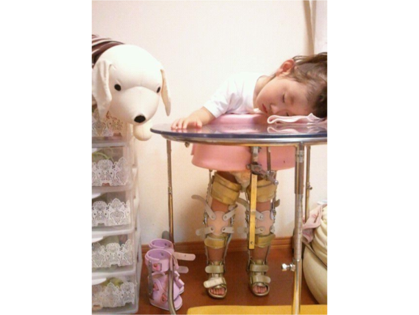 私の娘は、筋肉の疾患があるため、0歳の頃から理学療法士の訓練を受けています。うつ伏せの姿勢、寝返り、装具をつけて立つ姿勢、座った姿勢から床にごろんする、など娘に必要な動きを教えていただき家でもやるのですが、「やだー!」と泣きながらやることも……。親としても心を鬼にしてやる日々でした。