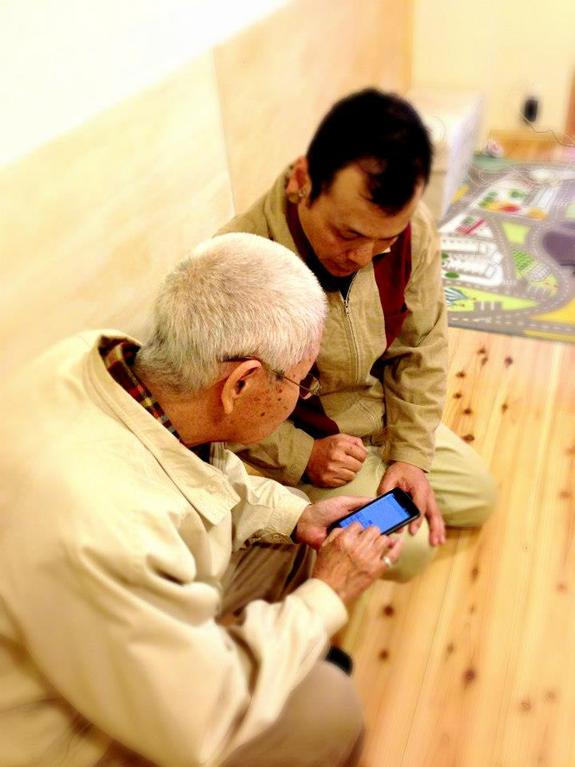 (写真は、地域リビングにて75歳の単身男性がフェイスブックを始める様子です)
