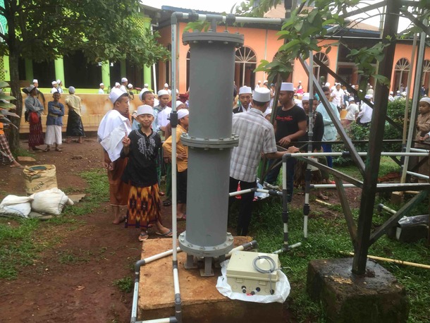 水処理機器を設置する対象は、現地で知り合ったNurul Iman Islamic Boarding School(以下NIIBS)という学校です。NIIBSは、お金がなくても幼稚園から大学生まで15,000人の孤児達が笑顔で生活し学んでいる学校です。その学校には何箇所もの井戸があるにも関わらず、飲料水には適さない水でした。