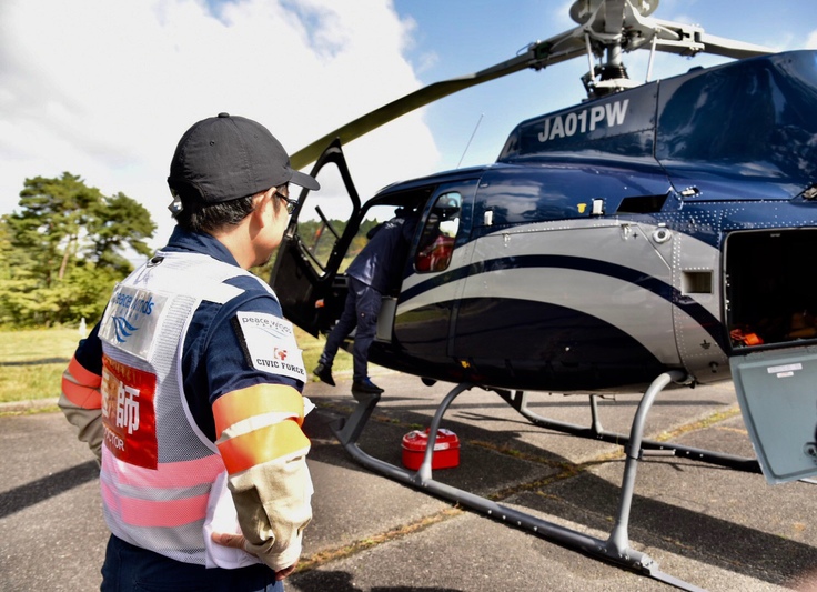 「浸水と停電で病院孤立、救助要請あり」——台風19号の影響で長野市内の病院で患者が取り残されているとの情報を受け、Civic Forceは10月13日朝、連携団体とともに専用航空機とヘリコプター、車両などで被災地へ向けて出発。同日中に千曲川周辺に到着し、床上浸水した長野市内の2病院の患者らを近隣の医療機関へ搬送しました。長野県DMAT(災害派遣医療チーム)や自衛隊などと協力して搬送した患者の数は270人以上。約5日間、搬送する患者の体調確認や受入病院への引き継ぎ、車両による搬送などを担ったほか、院内の清掃や機材の貸与なども行いました。