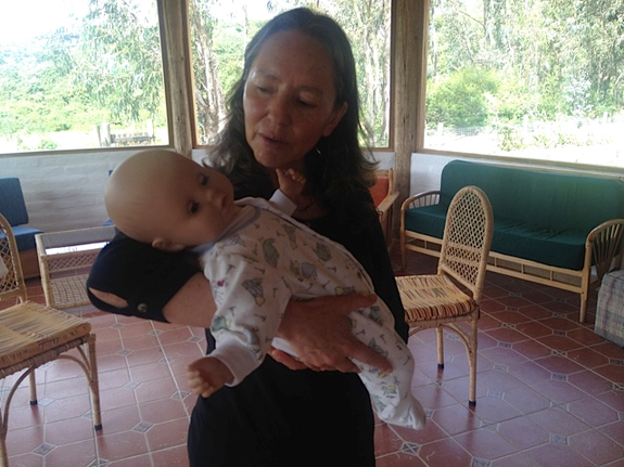 施設のスタッフと赤ちゃん Bebé conversando con una ayudante