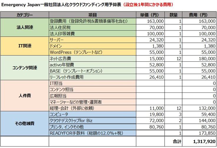 今回のプロジェクトでは、みなさんからご支援をいただいてEmergency Japanを任意団体から法人にします。
