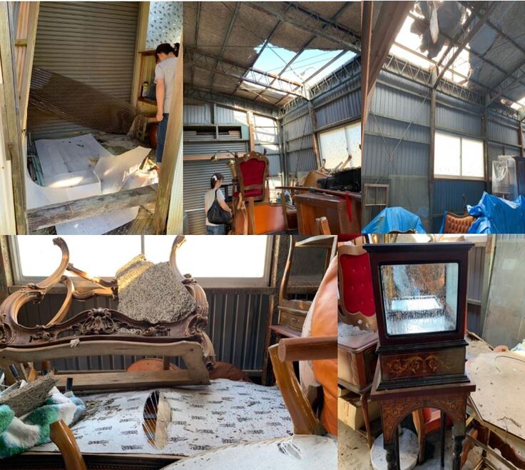 立ち上げたばかりの会社の備品や在庫を置くため借りていた倉庫は屋根が複数箇所崩落し、置いていた物は野ざらし状態になり、台風の雨が全ての物に染みてしまい全滅でした。