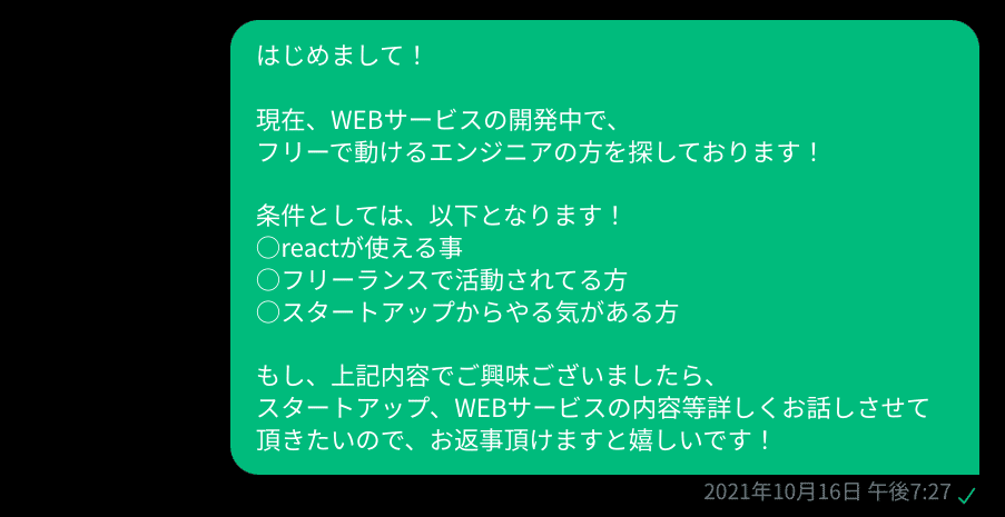 僕はTwitter上で『エンジニア 』で検索して、この人と仕事したい!と思う人にDMをしてました。