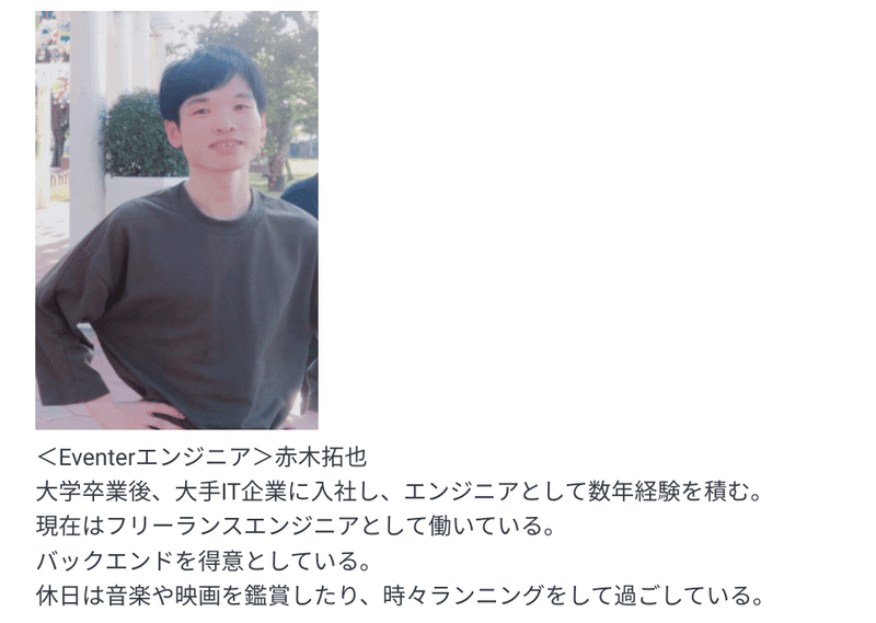 僕はなんとしてでも、この人を仲間に加えなければ!と感じて猛アタックし、今ではEventerエンジニアとして、サービスの開発にお手伝い頂いております!!