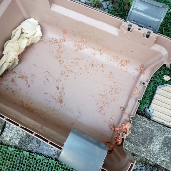 移動の為に使ったクレートがこんな状態になるくらいに汚れた身体