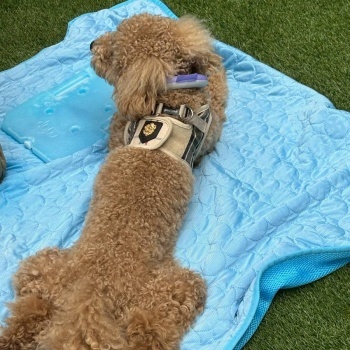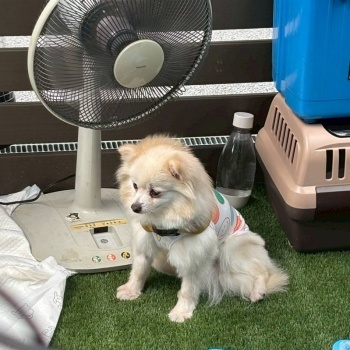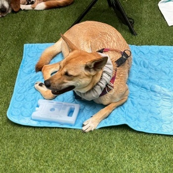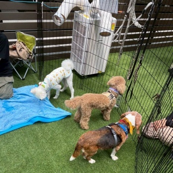 屋根付きドッグランでスポットクーラーが常設とはいえ、蒸し暑いだろうと冷凍ペットボトルや保冷剤、扇風機を数台の持ち込みでなんとかのりきりました。