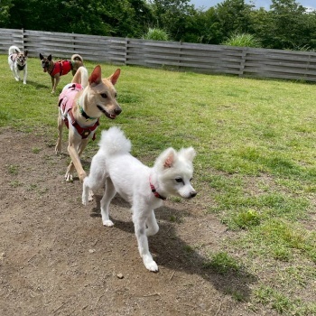 来客者のタイミングを見計らい、交代でドッグランで遊ばせていただけたので、犬達は普段の譲渡会の時より生き生きしていいるように感じました。