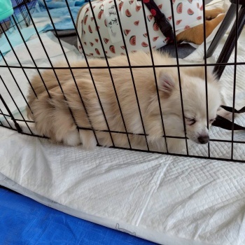 お昼ご飯を食べ散らかしている子(大きいけれど、まだ1歳未満のパピーちゃんなので3食なの)や、預かりさんの側から離れない子(こちらの子もまだパピーちゃん)