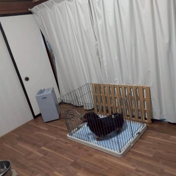 ただ、シートのサイズ的に部屋を全部覆いきれなかったのと、元々押し入れだった所を荷物置き場にしている関係で、完全フリーになった時は、そちらに行かないように柵の設置も考えています。
