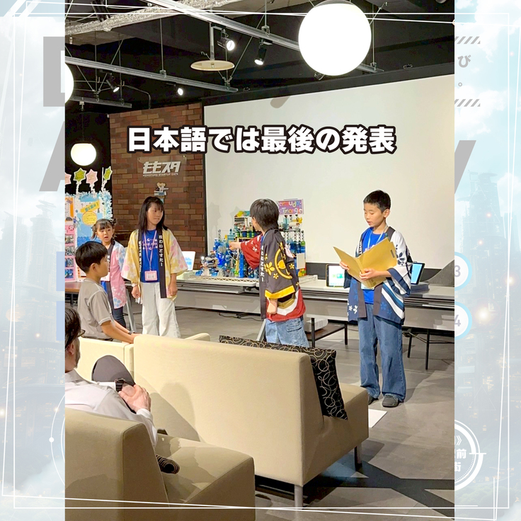 世界大会で着用する法被を着て、来場者に取り組みについて説明していました。