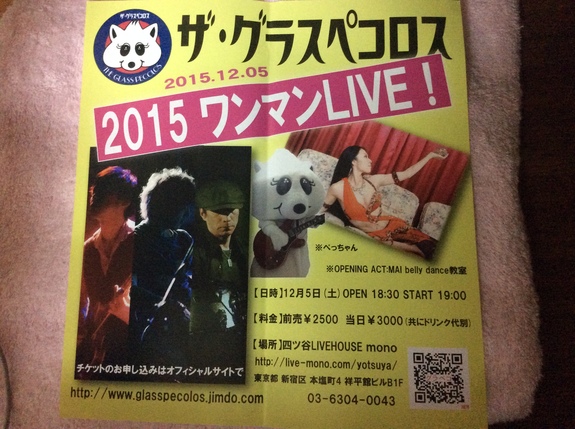 12月5日土曜日のライブのチケットをお送りさせていただきました。