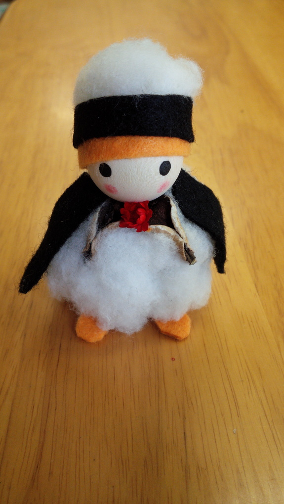 (初公開!白綿を使ってペンギンっぽく作りました)
