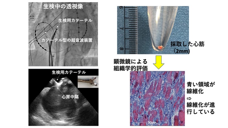 心筋の変性を診断するには、心筋を1~2ミリほど採取して顕微鏡で確認する方法がとられます。これを「心筋生検による組織学的評価」といい、従来は心臓の壁の厚い心室筋のみが心筋生検の対象でした。