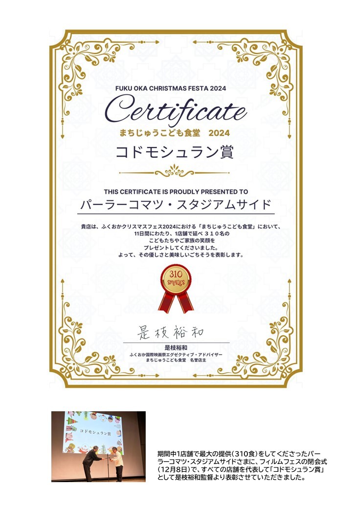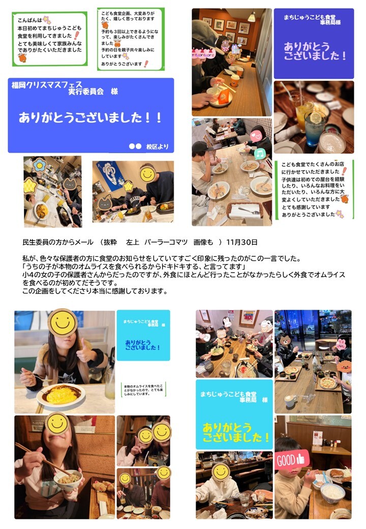 11月28日から12月8日まで福岡市内の72軒の飲食店と20のNPOこども食堂で