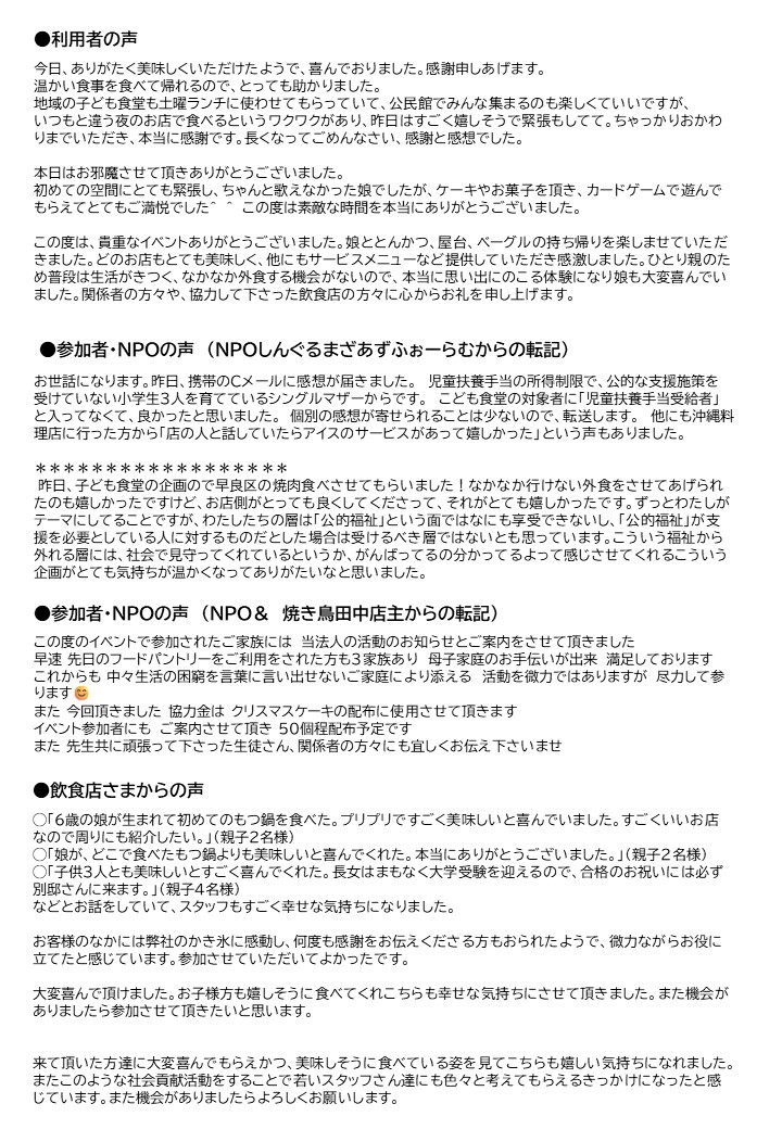 クリスマスのごちそうをプレゼントできましたのは、本当にみなさまのおかげです。
