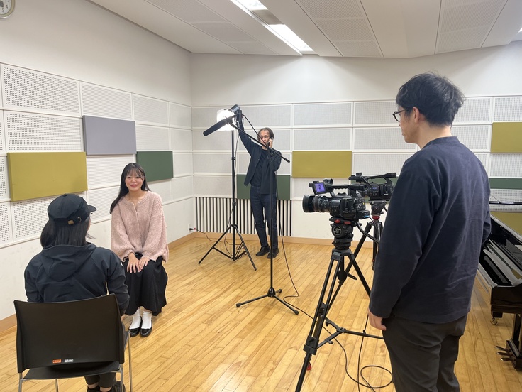 (3) 実行委員会副委員長へのインタビュー撮影 (2025年10月5日 国立音楽大学)