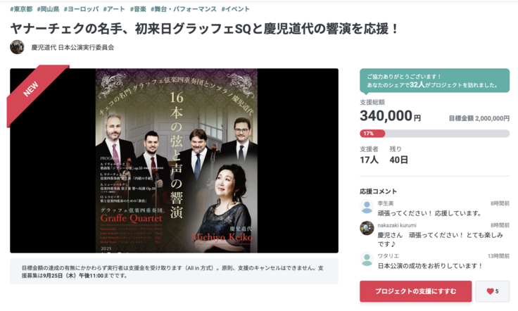 皆さまのご支援が、チェコからの招聘公演の実現を支える大きな力となります。心より感謝申し上げます。