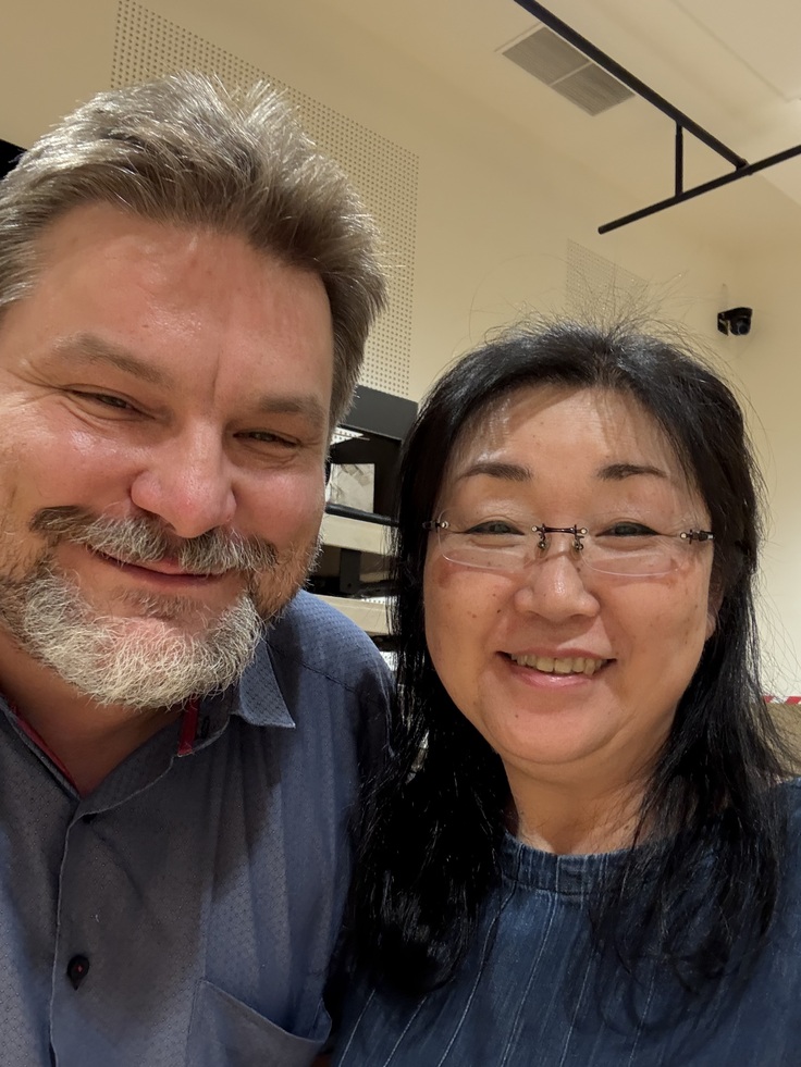 これは、ミハルと撮った 昨日の稽古場での写真です!