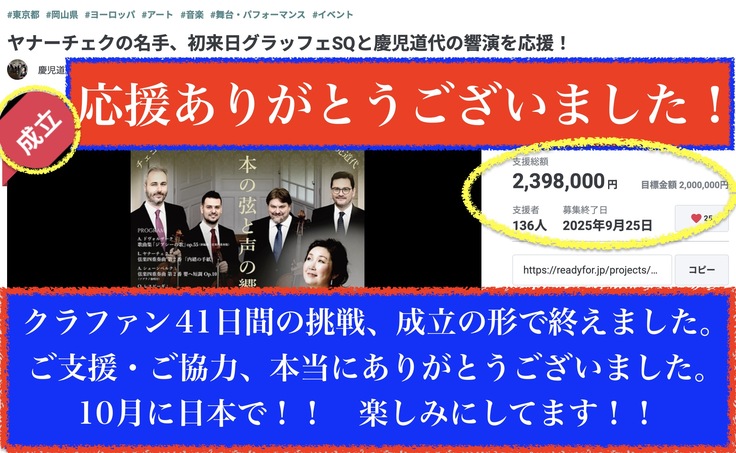 皆さまのご支援が、チェコからの招聘公演の実現を支える大きな力となります。心より感謝申し上げます。