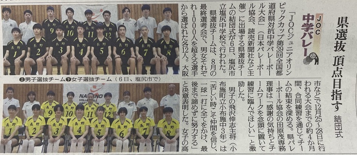 9月6日、JOC第39回全国都道府県対抗中学バレーボール大会 長野県選抜チームの結団式が行われました。