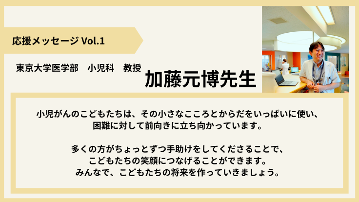 東京大学の加藤先生より、本プロジェクトへの応援のメッセージをお寄せいただきましたので、ご紹介いたします。