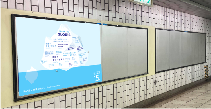 日本No.1(※)の経営大学院に成長したグロービス経営大学院に感謝を伝え、これからも発展しますように!という想いを込めて、グロービスの各校舎最寄駅に、応援広告を貼り出すプロジェクトです! グロービス卒業生の皆様、開学15周年の今こそグロービスを応援し、一緒に盛り上げましょう!是非、皆さんのご協力を何卒お願い致します。 ※プロジェクトに賛同してもらえる在校生からの応援も大歓迎です! (※)グロービス経営大学院プレスリリース「グロービス経営大学院開学15周年、入学者数は15年間で14倍となり日本最大規模のビジネススクールに成長」 https://www.globis.co.jp/news/release/20210420mba.html