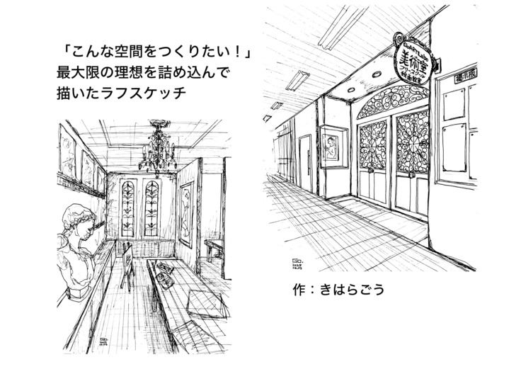 私の簡単なイメージのラフスケッチを元に、デザインしていただきました。画像は初期構想ですが、生徒たちが取り組む環境として、このような空間を作れると最高だと思っています。
