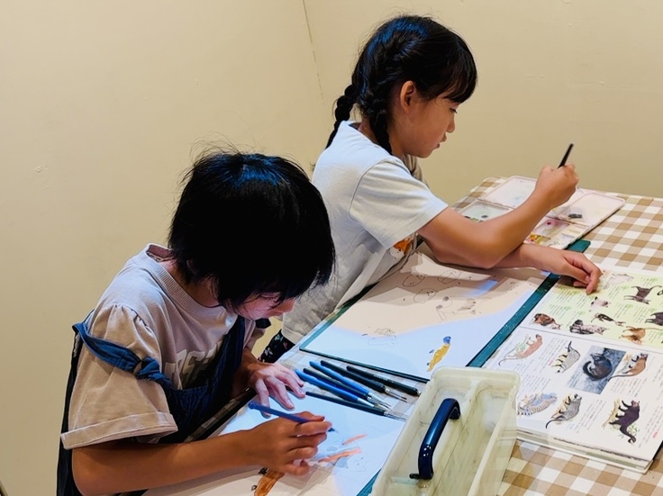 そこでは、評価や競争がない空間で、子どもたちが自分のペースで描くことを大切にしています。画材に触れ、色を混ぜ、描きたい気持ちが湧くまで待つ。うまく書くよりも「今、ここにいる」ことを大切にする場です。