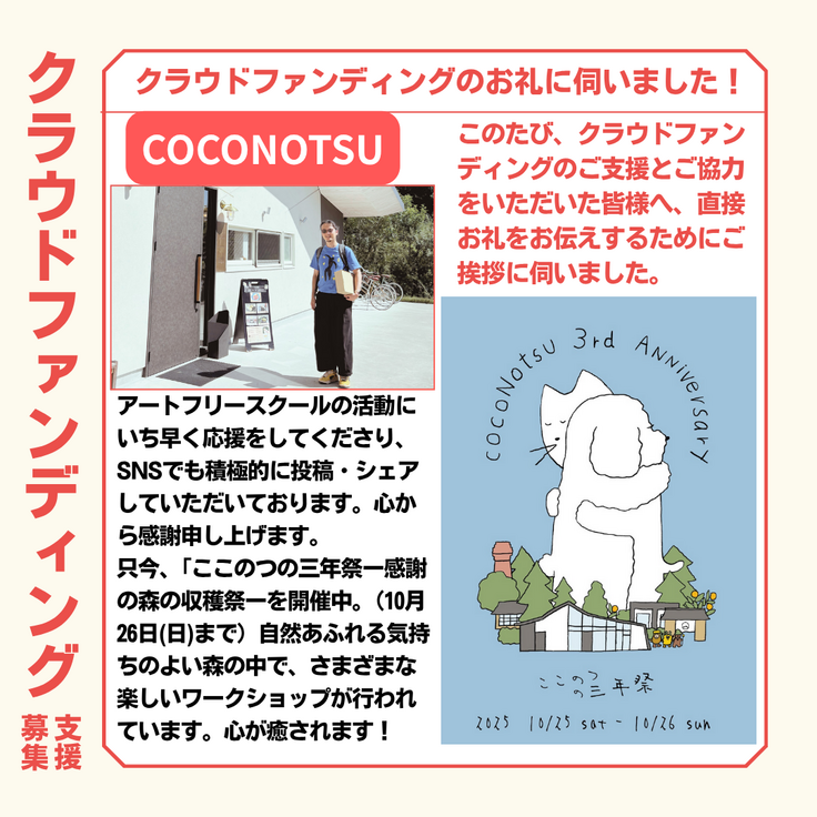 #coconotsu #ここのつの三年祭 #感謝の森の収穫祭 #美術室からはじまる未来 #感謝の気持ち