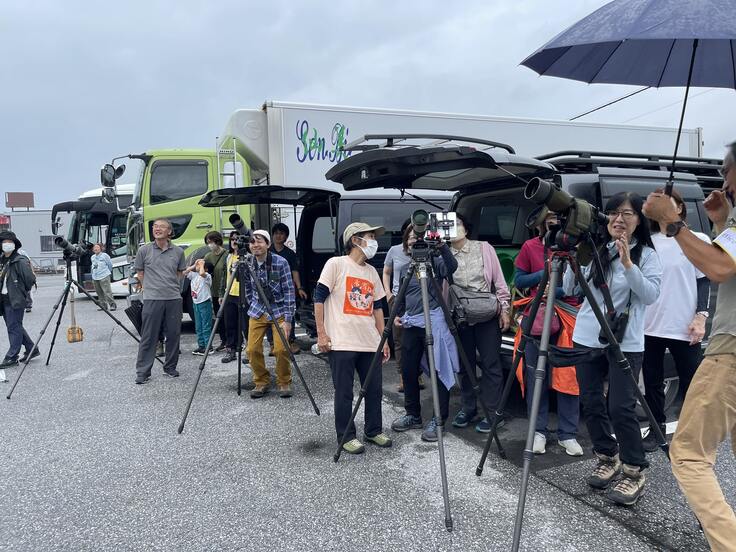 山にある高い鉄塔の頂上に巣が造られているので、平地から大勢が観察してもミサゴが警戒することはない。バスの中から観察することも可能なので少々の雨でも大丈夫だ。