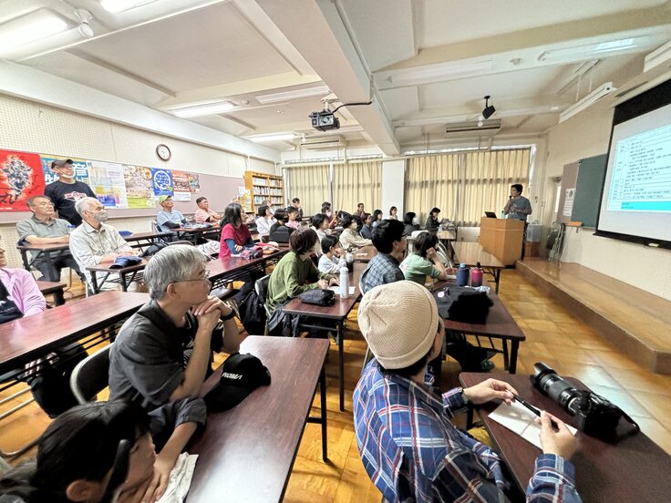 雨バージョン、最初はいつも通り伊吹山文化資料館へ行った。イヌワシ幼鳥の剥製を見て、レクチャールームでイヌワシとカワウの2つのテーマで僕と須藤明子が話をした。