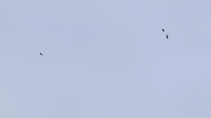 14時前には、親子3羽で現れてしばらく同じ木に止まった。両親ワシが飛び立ち狩りに出かけるのを追ってサーナも一緒に北尾根に向かった。