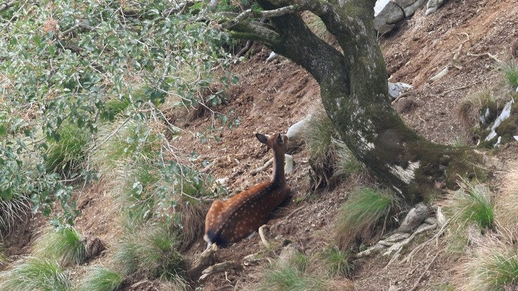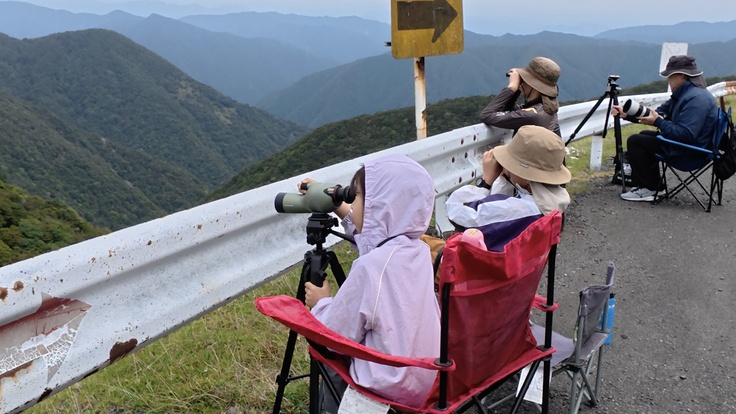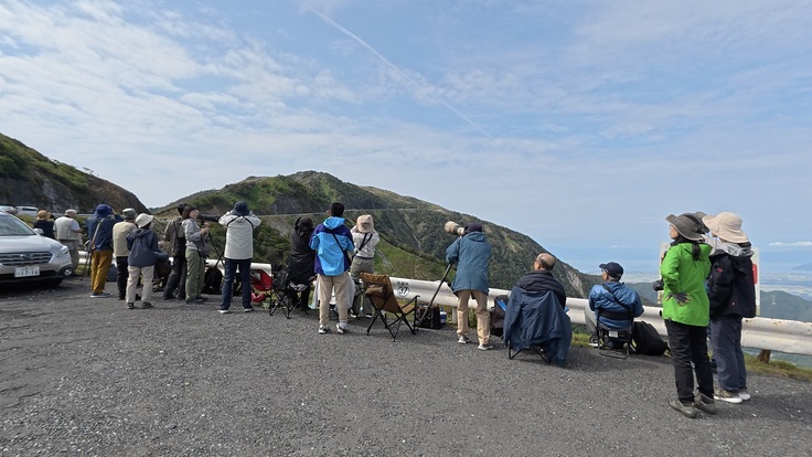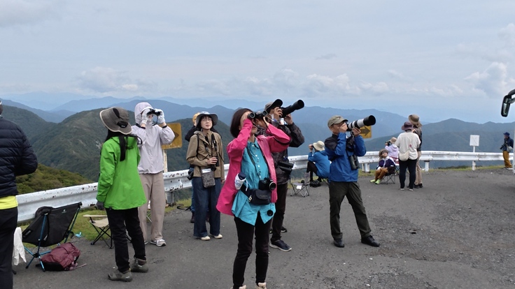 イヌワシは以前として出てこない。皆、真剣にイヌワシを探している。昼食とトイレ休憩に山頂駐車場へ行く時間が惜しいので、休憩時間を短縮してすぐに観察地点に戻りたいという要望も聞こえてくる。