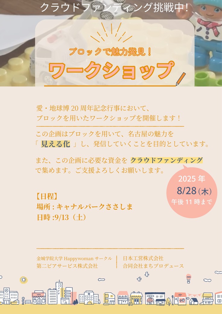 金城学院大学生がフライヤー「ブロックで魅力発見!ワークショップ」を作成してくれました。