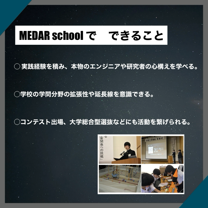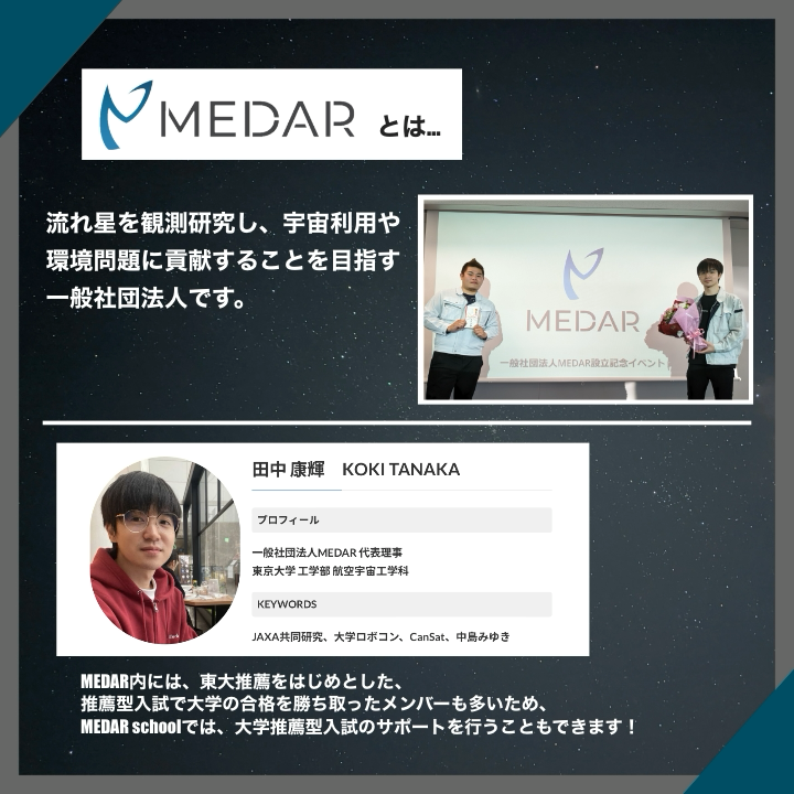 流れ星研究から宇宙利用、環境問題へ貢献することを目指すMEDARですが、この度オンラインスクール「MEDAR School」を開校することになりました。