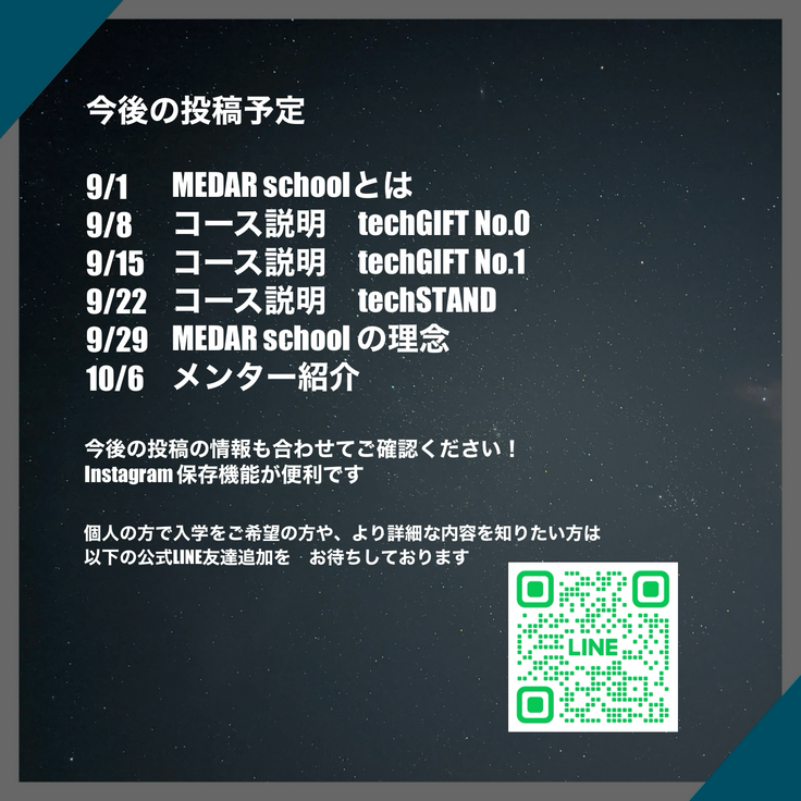 10月からスタートするMEDAR Schoolですが、開校までの1か月間、週一の情報発信をInstagramを中心に行っていきます!